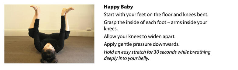 This is my stretch routine that I worked out and have done under supervision of my PT, once again get a PT and get some advice, but these work for me:In particular happy baby, cat-cow (the last one), flat frog and cobra.